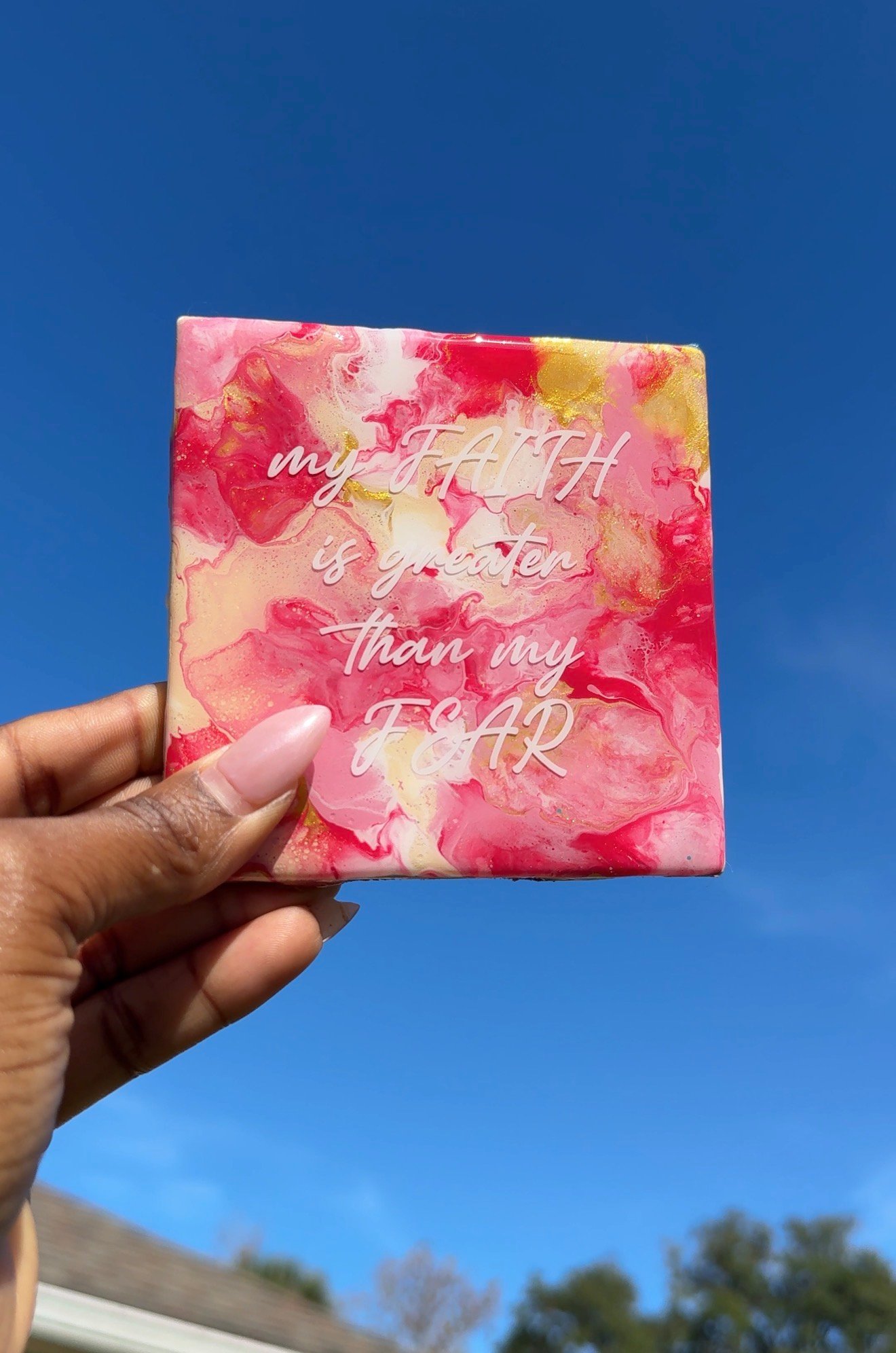 Set of 4 tile coasters topped with resin